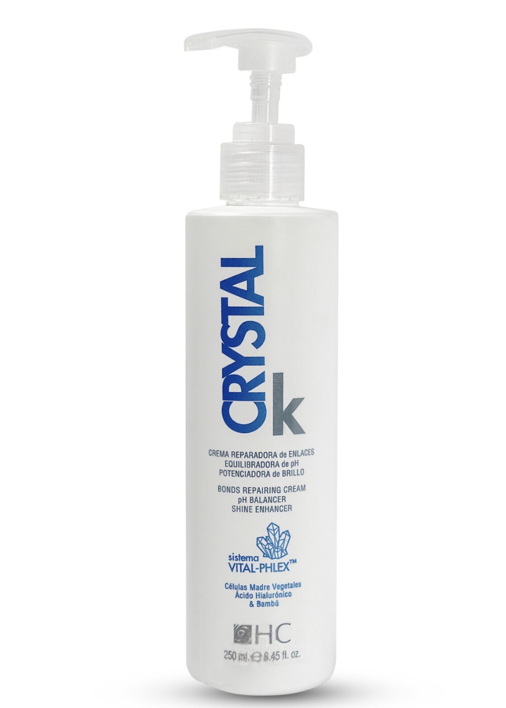 CRYSTAL K (250 ML) – Keratinový krém pro obnovu disulfidových vazeb a ochranu barvy. Profesionální krém pro obnovu vlasů po barvení a chemických procedurách. Rychle regeneruje vnitřní vazby vlasů, uzavírá pigment a zvyšuje lesk vlasů pro efekt křišťálového lesku.