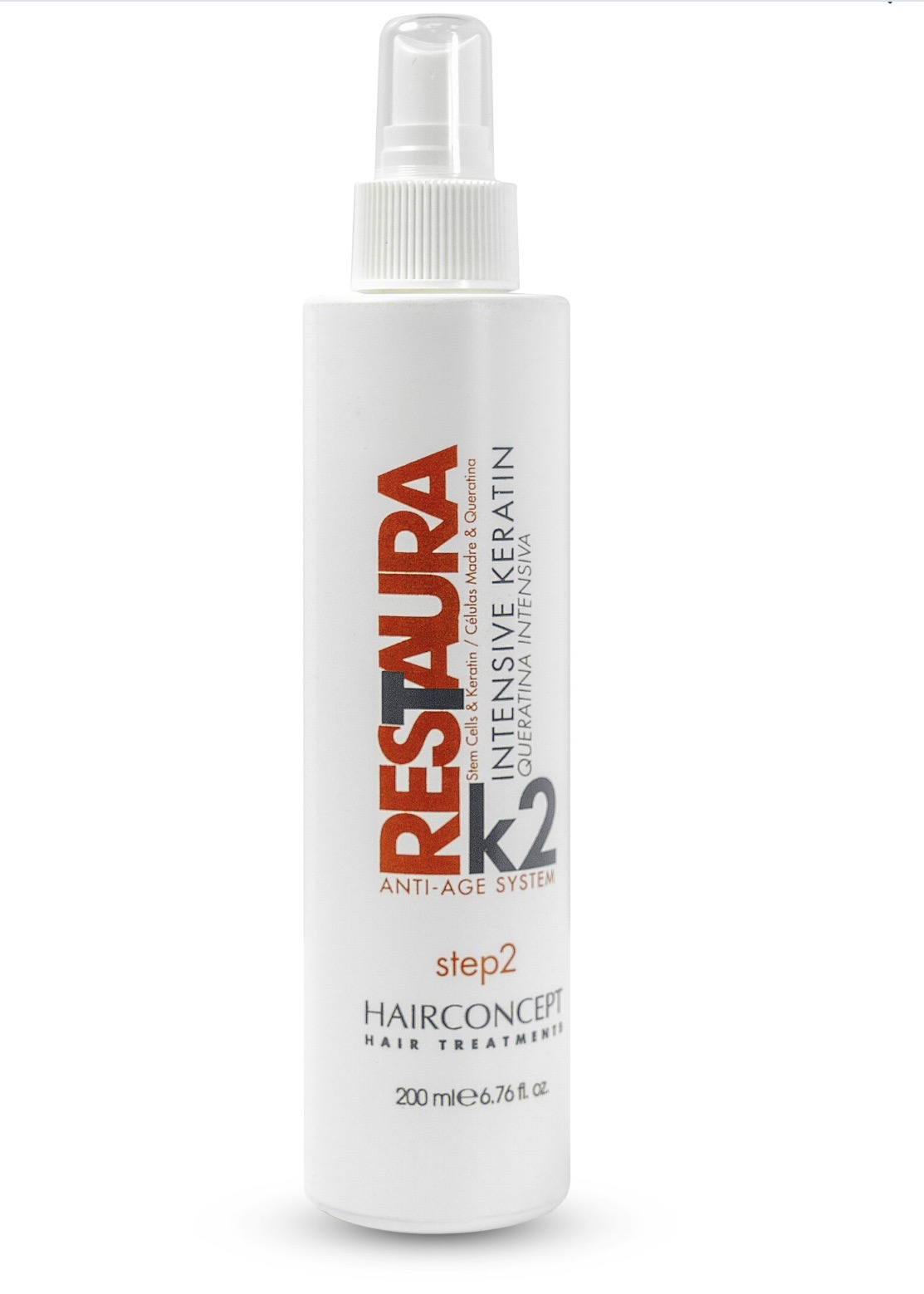 RESTAURA K2 (200 ML) – Intenzivní keratinový lotion pro rekonstrukci vlasů. Vysoce koncentrovaný keratinový produkt pro poškozené a lámavé vlasy. Rekonstruuje strukturu vlasů a roztřepené konečky, obnovuje hydrataci a hustotu vlasů.